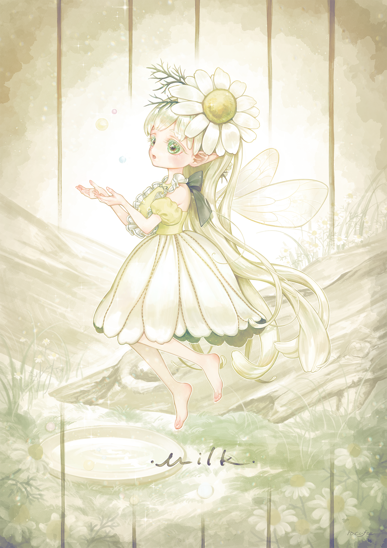 Milk drinks a drop of milk and eats a small lump of sugar.